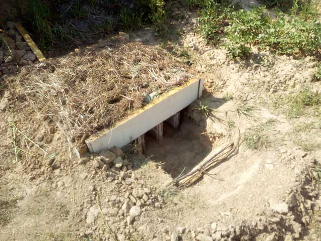 Na mjestu gredica se iskopaju kanali dubine oko 30 cm (širine i dužine po želji i mogućnostima). U kanal se ubacuju drveni materijali poput krupnog granja, komada drveta i manjih trupaca. Na to se